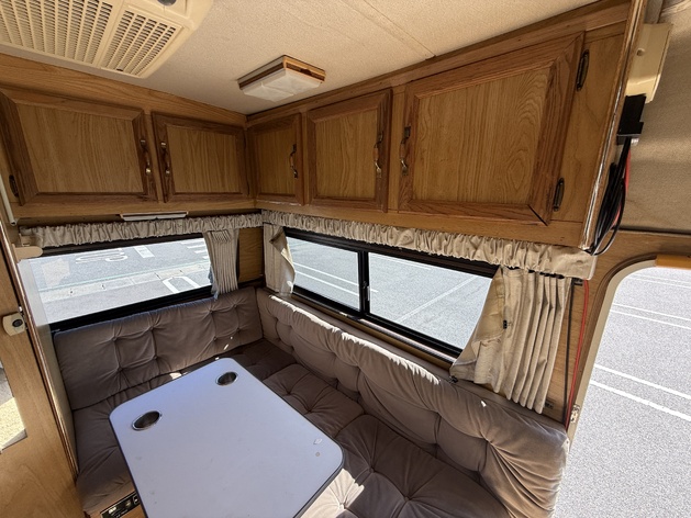 9、200Wソーラーパネル(新設)車両仕様( 全長…4,999mm 全幅…2,140mm 全高…2,81mm 全重…2,855kg 馬力…200馬力/4000rpm 駆動…AWD(4WD) 排気量…4,300cc シフト…4速コラムAT トルク…35.9kg/3600rpm エンジン…V6ボルテック ハンドル…左 エントランス…左(日本国内向け仕様) クルーズコントロール ABS Wエアバッグ パワーステアリング チルトステアリング 間欠ワイパー リアセンターブレーキランプ 回転式キャプテンシート(助手席のみ) ヒッチメンバー 装備 定員5名 就寝4名 バンクベット シンク 2口コンロ ルーフエアコン ベンチレーター オナンマイクロ発電機2.8kw L字型ダイネット&ベット 温水ボイラー トイレ/シャワー室 室内LED照明 3WAY冷蔵庫 FFヒーター(LP式) 清水タンク/86L 排水タンク/64L トイレタンク/26L ガソリンタンク/102L サブバッテリー(新品108A、2個) 走行充電 外部電源 200Wソーラーパネル サイドオーニング 車載式LPガスタンク(10キロ) ガス警報機 一酸化炭素警報機 収納棚&収納庫 昇圧トランジスタ バックカメラ ETC 車両説明書一式(英文)